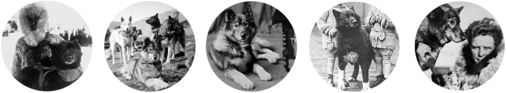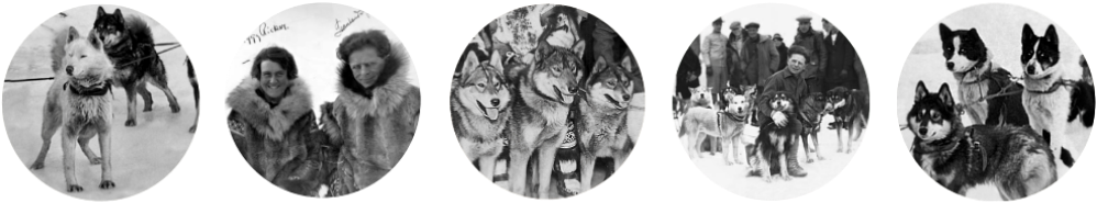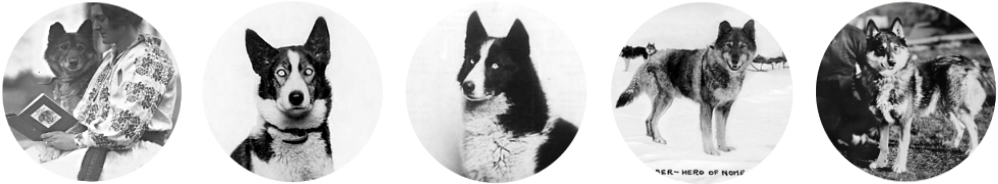 Balto ja lapset, sekä viimeisessä kuvassa Togo ja Seppala (Kuvat Janis Ingve, Candace Waugaman Collection ja baltostruestory.net).
