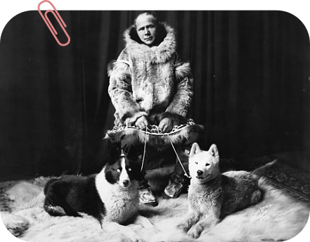 Sandy. Toisena Fox Ramsay ja siperialaisia koiria (Johnson: Lomen Brothers, Glenbow Archives ND-1-1060, Ramsayn kuva vanhasta sanomalehdestä, muut Janis Ingve,
