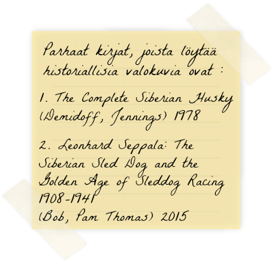 koiria valjakkoon. Seppalan seerumivaljakossa olivat ainakin Togo, Fritz, Billiken, Pete ja Scotty.