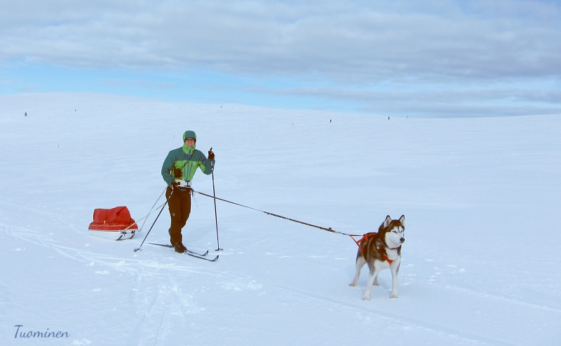 Yhdenkin koiran kanssa voi tehdä pitkiä hiihtovaelluksia.