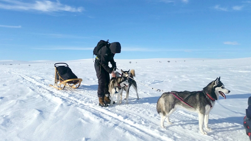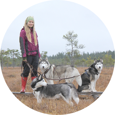 Muutama sana musherin pukeutumisesta. Ei ole olemassa huonoa säätä, on vain vääränlaista pukeutumista! Talviretkille pukeudutaan kuin sipuli, eli kerrospukeutuminen on tärkeintä. Aluskerrokseksi paras valinta on merinovillakerrasto. Merinovillassa on monenlaisia etuja; se on kevyttä, siirtää kosteutta ylempiin kerroksiin, pitää lämpimänä myös märkänä, eikä kutita kuten muut villatuotteet saattavat tehdä. Merinokerrastossa saa hikoilla reippaastikin koko viikon vaelluksen, eikä kerrasto ala haista – hyvä valinta siis myös kanssaretkeilijöiden kannalta!